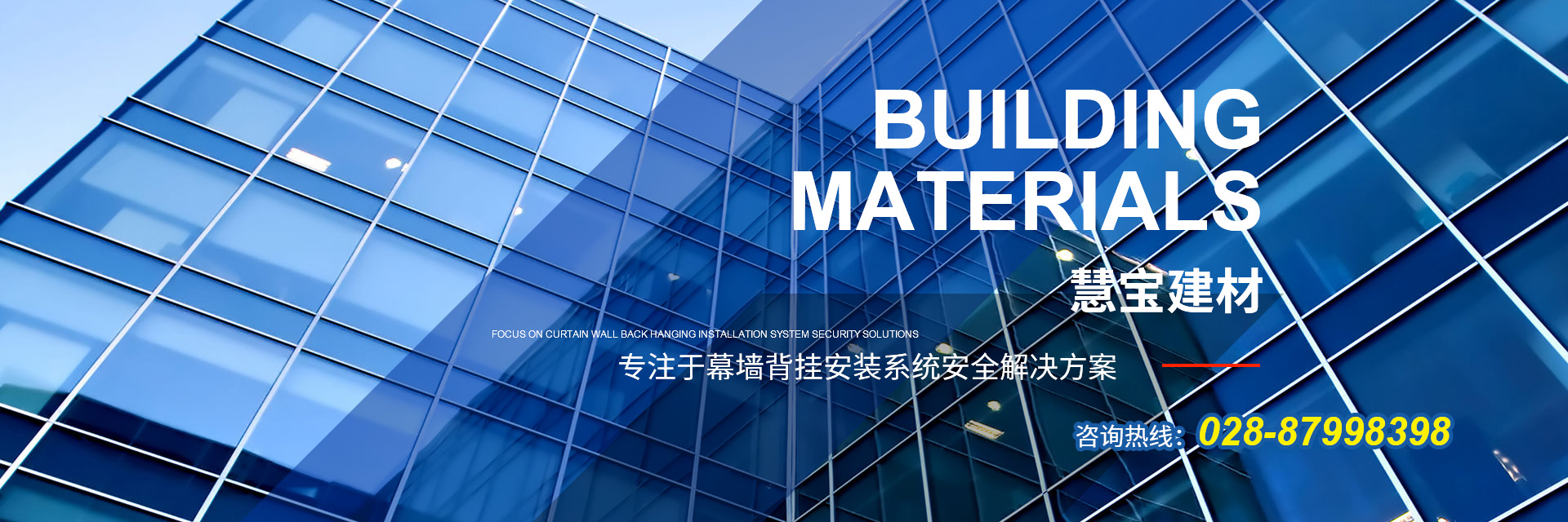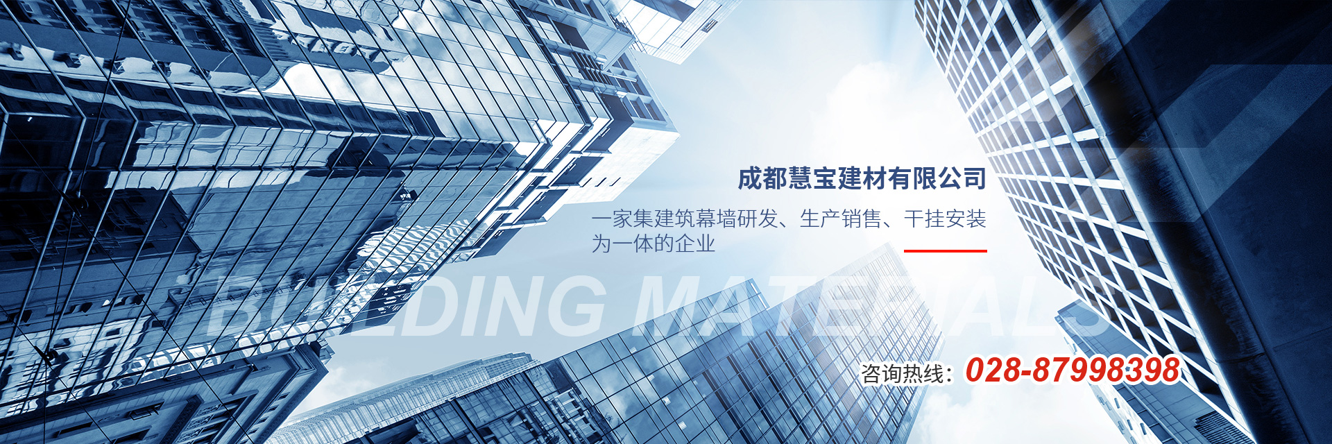 成都慧寶建材有限公司,成立于2008年,是一家集建筑幕墻研發(fā)、加工銷售、干掛安裝為一體的企業(yè)。公司秉承“一起創(chuàng)造,共同分享”的 企業(yè)理念,專注于幕墻背掛安裝系統(tǒng)安全解決方案。 公司擁有專業(yè)的工程技術(shù)、銷售及售后服務(wù)團(tuán)隊(duì),為客戶提供技術(shù)培訓(xùn)和技術(shù)咨詢。公司以市場為導(dǎo)向,質(zhì)量標(biāo)準(zhǔn)為原則,客戶滿意為宗旨,本著“誠信和諧、合作共贏”的經(jīng)營理念,繼續(xù)貫徹“創(chuàng)新進(jìn)取、追求卓越”的經(jīng)營方針,為客戶提供更加優(yōu)良的服務(wù)! 查看更多